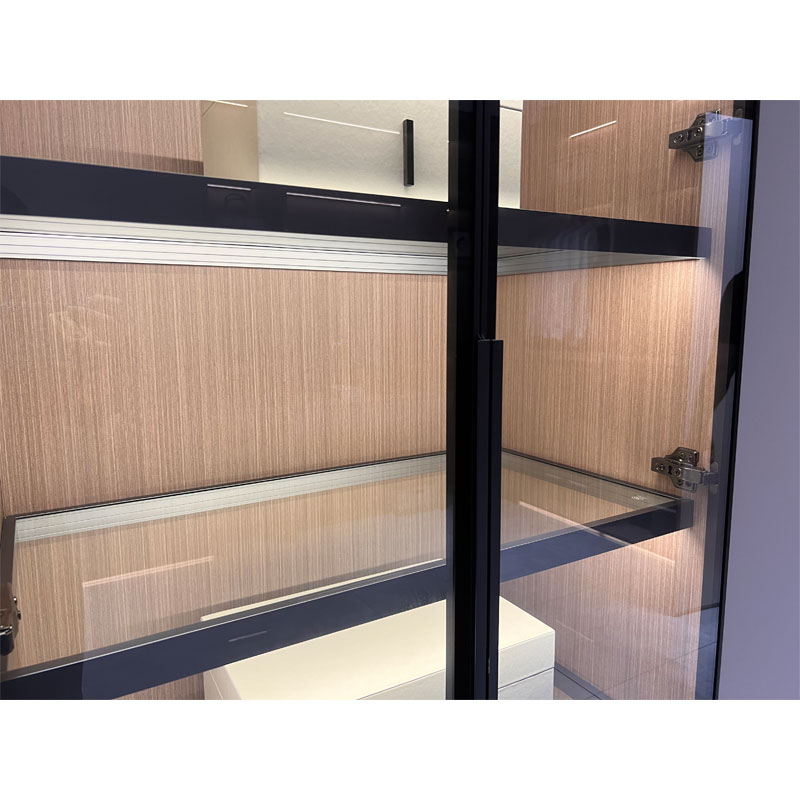 पारदर्शी काँचका ढोकाहरू र न्यानो बत्तीहरू भएका क्याबिनेटहरूले सम्पूर्ण कोठालाई थप रोमान्टिक बनाउँछ। तपाईं तिनीहरूमा केही गहनाहरू, घडीहरू, सनग्लासहरू र अन्य सामानहरू राख्न सक्नुहुन्छ। हीरा र धातु तारा जस्तै चम्कनेछन्।